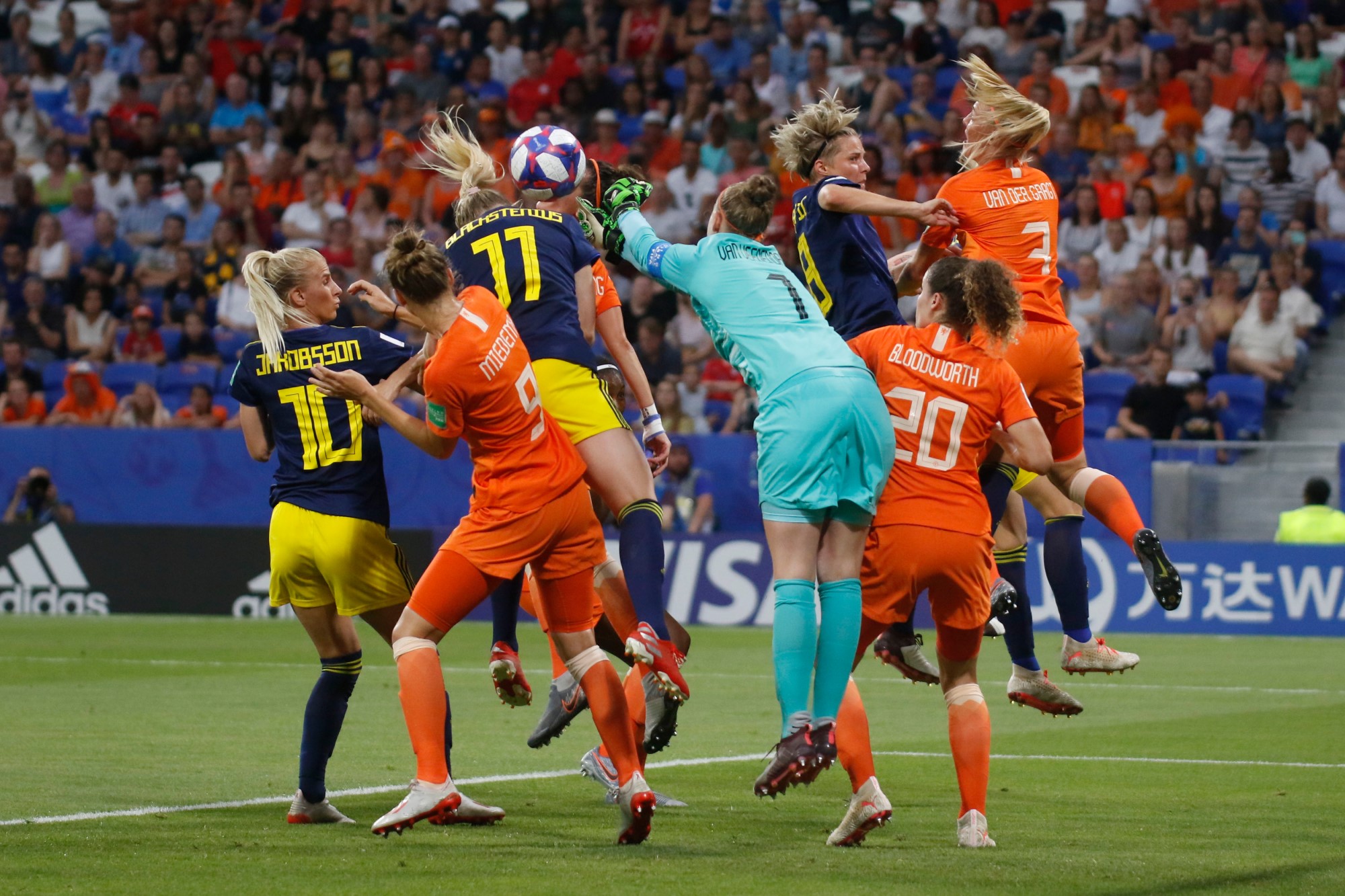 This encounter, also the Netherland’s first appearance in a FIFA Women’s World Cup semi-final, played at the Parc Olympique Lyonnais, was a match-up between two of the best teams in Europe. Living up to that billing, both sides battled to a goalless draw in regulation, before the Netherlands snatched victory through a goal by Jackie Groenen in the first half of extra-time.